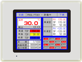 TEMI880P 韓國三元原裝進口 5.7寸TFT液晶屏 RS232通訊介面, 可選配USB存儲。 | 介面中英文可切換 120組,1200段, 每段99小時 全部循環999CYC 部分循環99 |