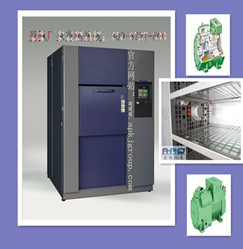 - 可程序冷熱沖擊箱|可程序冷熱沖擊機(jī)是金屬、光電、塑料、電子、橡膠、電子等材料行業(yè)必備的模擬環(huán)境溫度突變的耐候試驗(yàn)。此設(shè)備屬于可靠性試驗(yàn)設(shè)備,可以模擬極高溫環(huán)境及極低溫循環(huán)在短時間或者瞬間內(nèi)轉(zhuǎn)換及交替試驗(yàn)兩種不同的溫度環(huán)境。具有不同溫段沖擊功能:由多級蒸發(fā)器結(jié)構(gòu)相應(yīng)切斷,控制蒸發(fā)面積與制冷量膨脹閥匹配,使用制冷系統(tǒng)輸出合理減少加熱器中和的輸出量,達(dá)到恒定節(jié)能;另有獨(dú)立的換氣閥門,在排氣(常溫恢復(fù))時動作引入環(huán)境空氣。排氣口從機(jī)械室和試驗(yàn)區(qū)排出熱氣定時預(yù)定功能。進(jìn)氣口在環(huán)境溫度曝露時吸進(jìn)外面的空氣。曝露時間縮短功能。