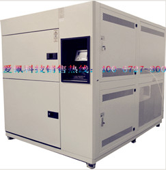 - 提籃式冷熱沖擊試驗箱也叫兩箱式冷熱沖擊試驗箱或者二箱式冷熱沖擊試驗箱,它的結構與三箱式冷熱沖擊試驗箱的不同之處就是擺放測試物的區域是一個由不銹鋼做成的提籃,藍子內分為兩層格層用于擺放產品。設備在做沖擊試驗時通過氣缸拉伸提籃在冷溫區和熱溫區中間來回竄動從而達到沖擊效果。當用戶在做冷沖擊時提籃會被提到冷溫儲溫箱,當用戶在做熱沖擊設定時提籃會被提到熱溫儲溫箱,當然這些移動工作是在10秒鐘之內完成的,穩定時間在3~5分鐘以內,完全能達到國家標準。(為了保證試驗箱降溫速率和最低溫度的要求,本試驗箱采用一套進口德國半封閉壓縮機所組成的二元復疊式水冷制冷系統(需在室外安裝每小時冷卻水量為10噸的循環冷卻水塔,由愛佩提供)。復疊式制冷系統包含一個高溫制熱循環和一個低溫制冷循環,其連接容器為蒸發冷凝器,蒸發冷凝器是也到能量傳遞的作用,將工作室內熱能通過兩級制冷系統傳遞出去,實現降溫的目的。制冷系統的設計應用能量調節技術,一種行之有效的處理方式既能保證在制冷機組正常運行的情況下又能對制冷系統的能耗及制冷量進行有效的調節,使制冷系統的運行費用和故障率下降到較為經濟的狀