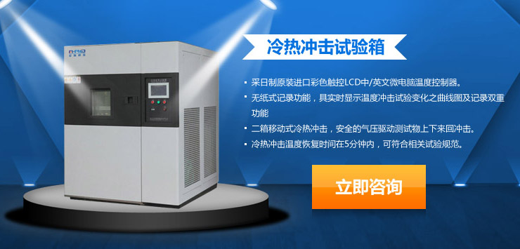 - 研究所常用溫度沖擊試驗箱特點: 1.設(shè)備分為高溫箱(亦是熱溫箱)、低溫箱(亦是冷溫箱)兩部分,三廂式多一個固定的測試箱(放產(chǎn)品區(qū)域)、兩廂式多一個移動的吊藍(放產(chǎn)品區(qū)域). 2.內(nèi)膽均采用優(yōu)質(zhì)SUS304不銹鋼板,耐高溫、耐低溫、耐腐蝕、易清洗、美觀大方. 3.制冷系統(tǒng)采用日進口復疊式全封閉式壓縮機或半封閉式壓縮機及環(huán)保冷媒,節(jié)能環(huán)保. 4.模塊化制冷機組,能確保制造質(zhì)量,且維護替換非常方便. 5.最新的自動除霜技術(shù),除霜時間有效縮短,反應箱的使用率大大增加. 6.采用原裝日本OYO9226STFT真彩LCD觸摸屏,直觀、操作簡易、運行穩(wěn)定并且更加節(jié)能 7.選配測試孔可供外加電源負載配線測試部件(僅限三廂式) 8.完善的安全保護措施,故障報警顯示及故障原因和排除方法功能顯示. 9.自主研發(fā)控制軟件,既可監(jiān)視高溫箱,低溫箱溫度,又可以監(jiān)視試品周圍及試品表面溫度,可根據(jù)用戶要求選配.
